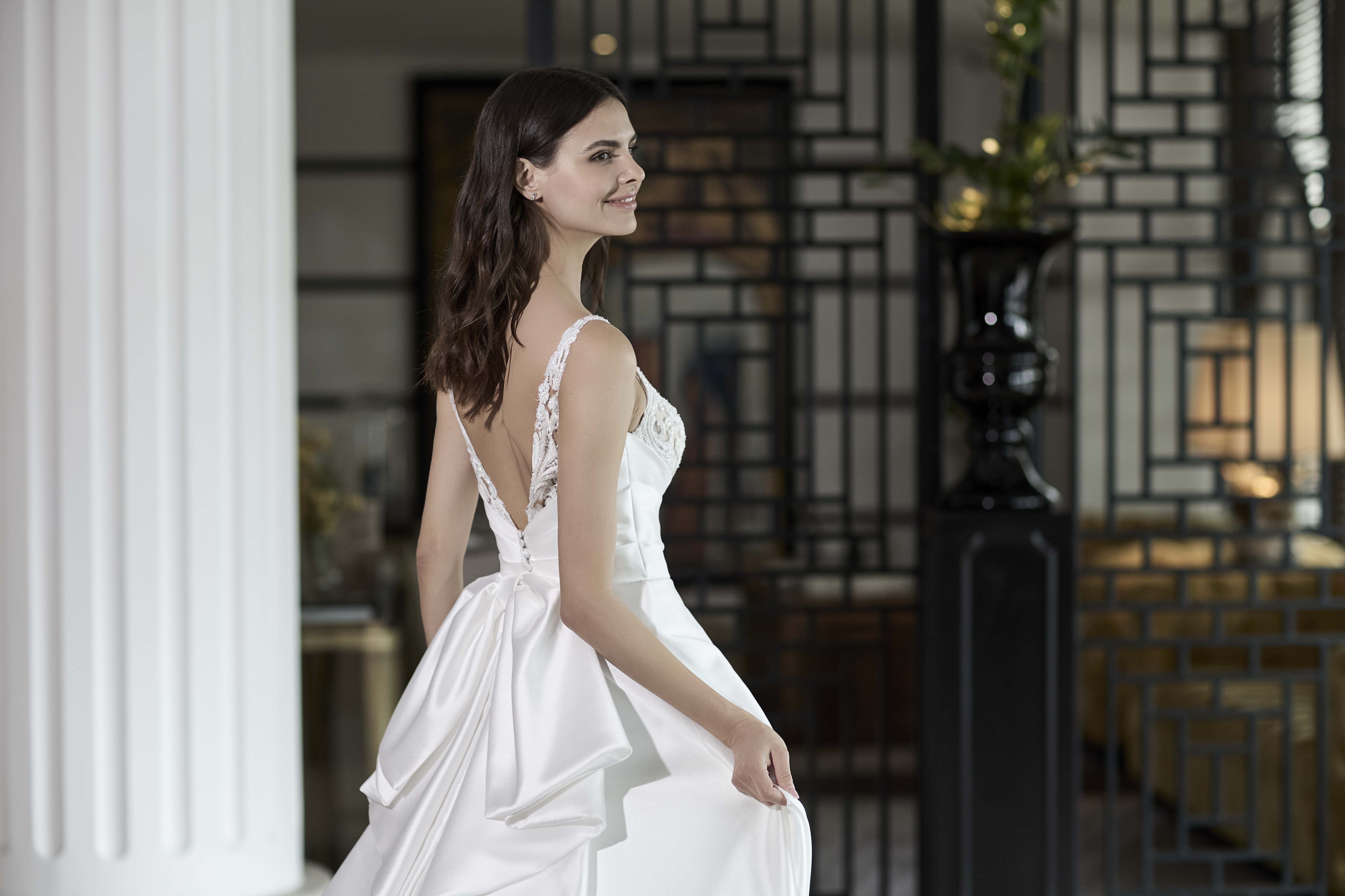 In Atelier è presente una vastissima scelta di modelli da provare, per tutti i gusti e le necessità. Alla scelta dell’abito segue la misura della modellista specializzata perchè l’abito deve essere perfetto, come cucito addosso. Seguono la scelta degli accessori: -velo -guanti -scarpe -portafedi -acconciatura.