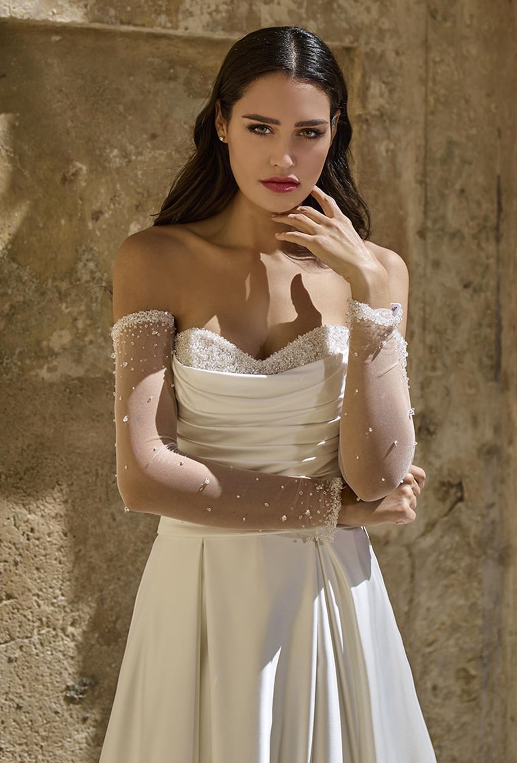 In Atelier è presente una vastissima scelta di modelli da provare, per tutti i gusti e le necessità. Alla scelta dell’abito segue la misura della modellista specializzata perchè l’abito deve essere perfetto, come cucito addosso. Seguono la scelta degli accessori: -velo -guanti -scarpe -portafedi -acconciatura.